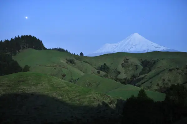 Arriving at a known location after dark still has its uncertainties, especially when the moon is just past full and so has yet to appear. Where exactly will it come up, and how long before it illuminates my landscape?? This lovely scene is inland from Stratford but not too far into the hill country. After many days of rugged winds in Hawkes Bay and Manawatu it was a relief on my way home to have a clear, calm night. I staked a place at the top of the road, and watched impatiently the developing moonglow on the horizon behind.
