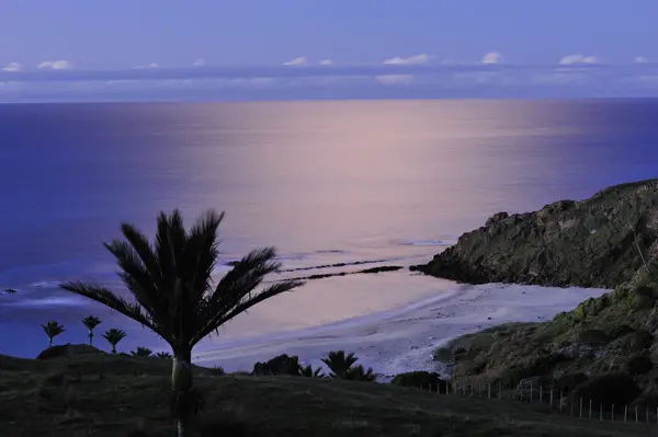 Gilbert’s broad beach has an offshore reef, making it a safe swimming spot with clear water. A backdrop of scattered nikau and huge limestone buttress enhances the experience and as a location for the perfect summer idyll Gilbert’s lacks only shade – not that this mattered when I took the shot above.