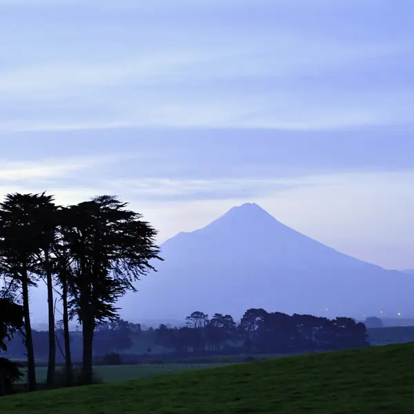 The image above was one I had to wait for beside a country road (Neill Rd East) near Eltham. The lights of Kapuni petrochemical are in the distance, meaning it was actually darker than this intentionally pastel rendition of the scene suggests. Darker versions of this scene were less successful as all the lowland detail was lost in the deeper twilight. Here such detail gives a sense of distance and perspective.