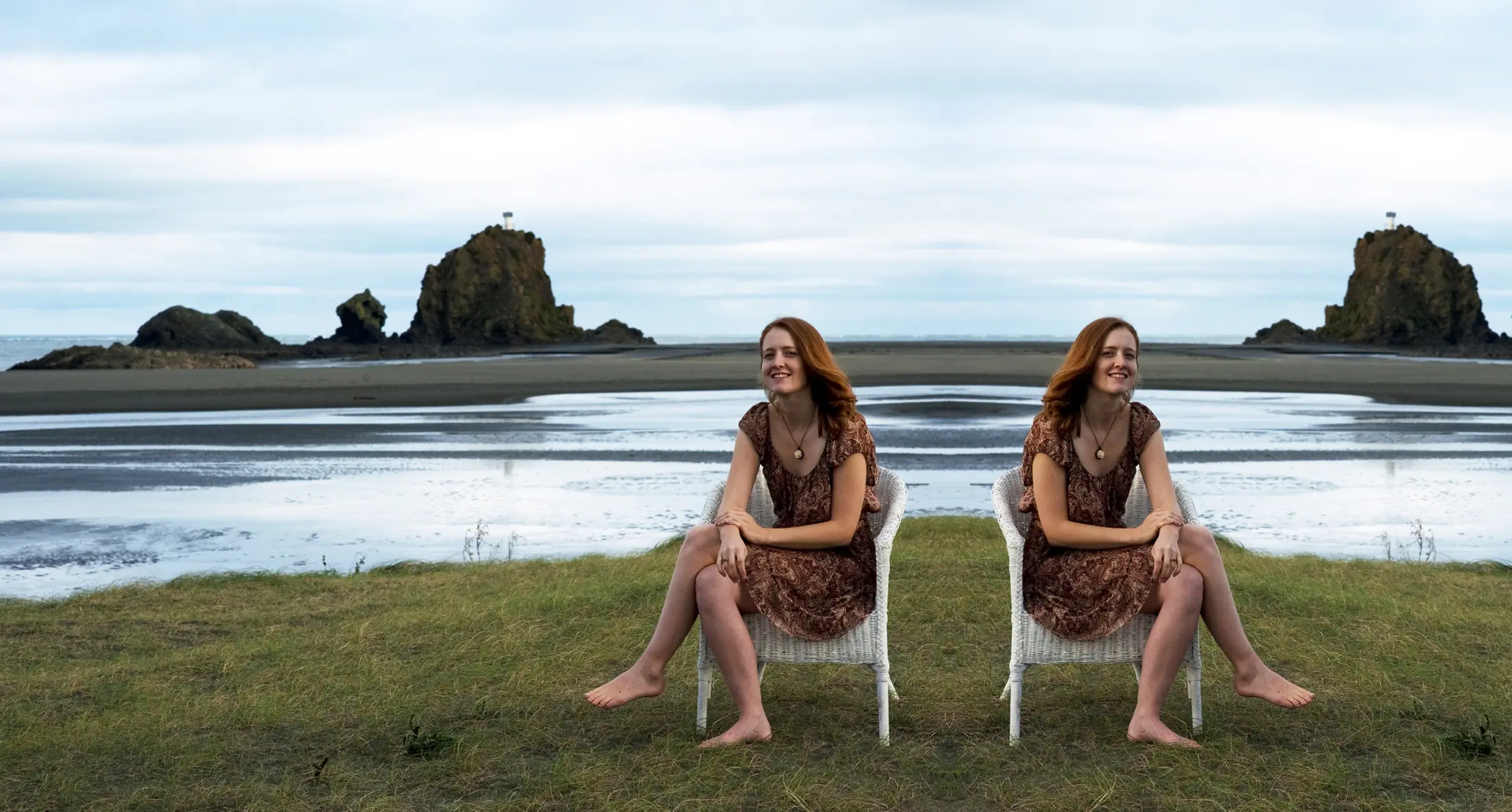 Whatipu is a vast expanse of beach and wetland on Auckland’s west coast. It’s a wild place and amazingly changed since my first visit over 40 years ago – wider and wetter, it is now also far more vegetated. On a winter’s afternoon we barely sampled the place – there’s hours of it. After only a short interlude of sporadic sunshine, threatening cloud suggested a retreat to the car. Here Claire and her faithful doppelganger appear to enjoy some brief relaxation, in between rays. With thanks to Lucy for the chairs and Yana for other assistance.