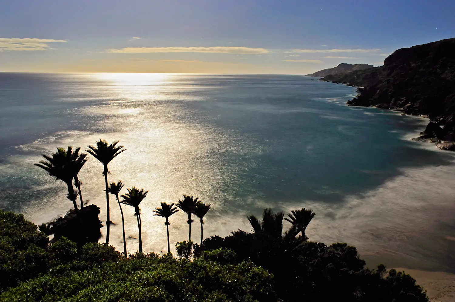 Summer moon, Turtle Cove was taken in a very special, private location one perfect evening in early February. The view was wonderful: moonlight flickered on the sea behind a silhouette of nikau palms. The rugged limestone coast of Turtle Cove stretched away to the north, while surf broke softly on the sand below us. Just out of frame is the Turtle itself, a curious rocky outcrop. All that magic filtered slowly into my camera with a long exposure. Summer moon is very summery – and very moony!