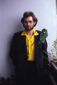 Self-portrait with yellow shirt and silverbeet, 1981
